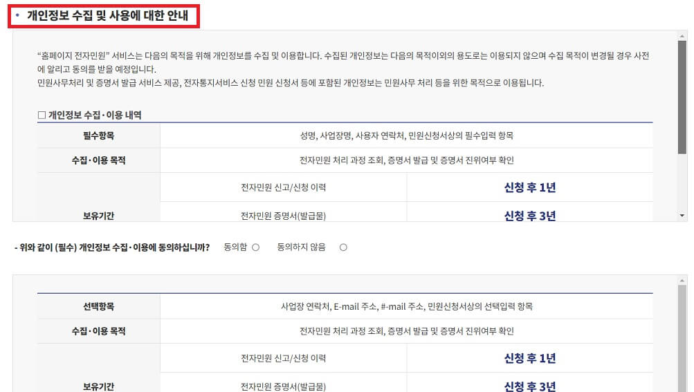 - "개인정보 수집 및 사용에 대한 안내"에서 [동의함] 및 [확인]에 체크하기 (3곳)