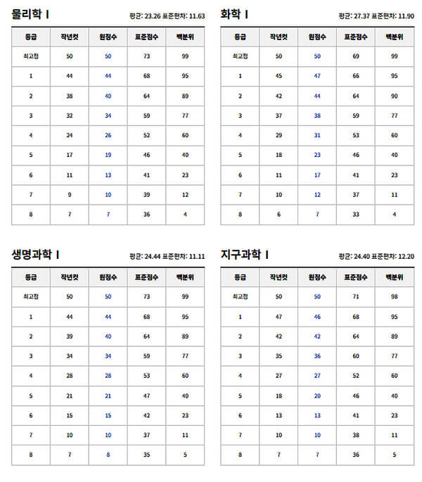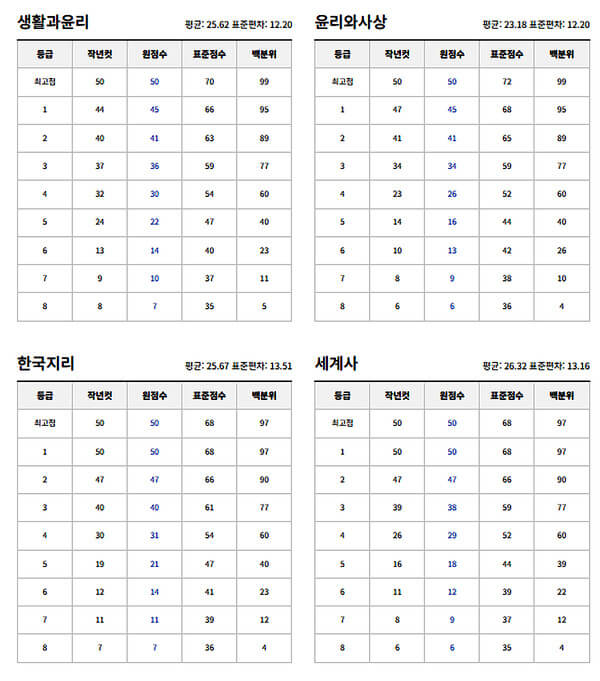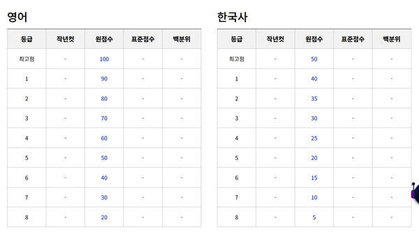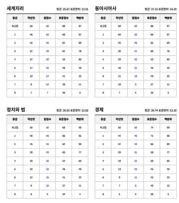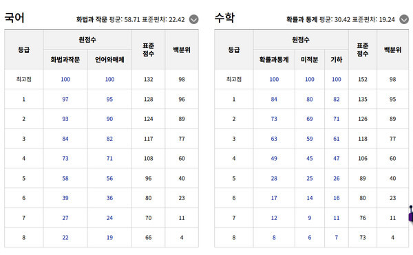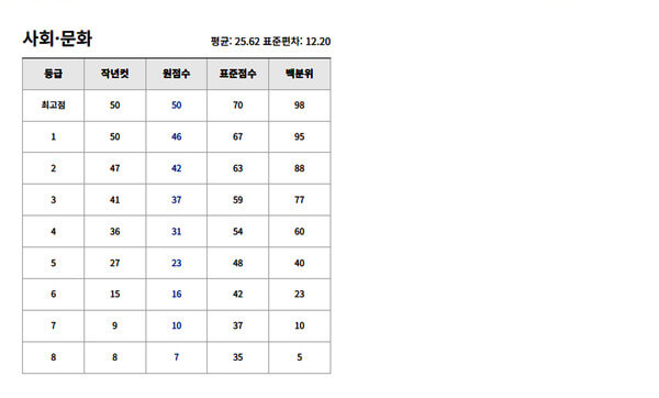 | 1등급 | 97 | 95 | 84 | 80 | 82 |