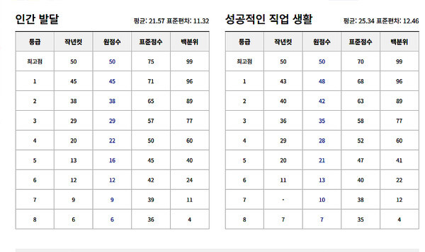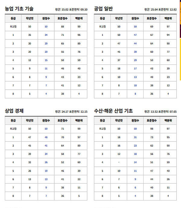 ✅표준점수 : 과목별 난이도를 반영한 점수