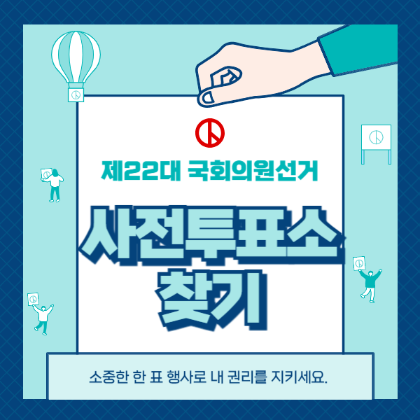 제22대 국회의원선거일은 4월 10일입니다. 그런데 당일에 투표가 어려우신 분들이라면 잘 오셨습니다. 제22대 국회의원선거 사전투표소 찾기 하는 것을 보다 쉽고 빠르게 알려드립니다! 바로 아래 보시고 검색해 보세요!